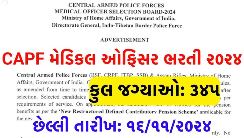 CAPF Medical Officer (MO) Recruitment 2024:The Indo-Tibetan Border Police (ITBP) Force has released the notification for the recruitment of 345 Medical Officers (MO) in the Central Armed Police Forces (CAPFs). The CAPF Medical Officer Selection Board- 2024 Notification is released and online applications are invited from 16 October to 14 November 2024. The eligible candidates can apply online …